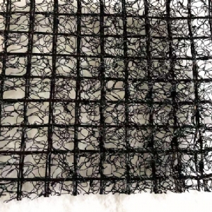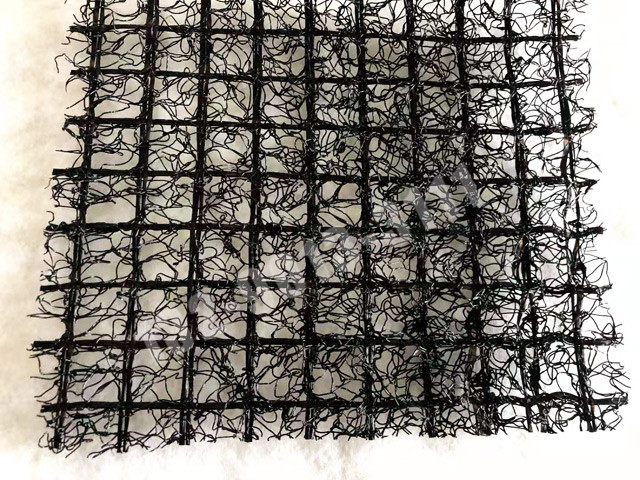 2、格柵噴絲網(wǎng)復合型。聚酯長(cháng)絲型材料采雙軸向經(jīng)機加工環(huán)布, 利用不同紗線(xiàn)的特性在涂層處理上實(shí)現三維網(wǎng)狀彎曲,聚酯長(cháng)絲表面涂覆 PVC 涂層。格柵噴絲復合型是一種以亂絲熔融鋪網(wǎng)在經(jīng)編聚酯格柵背架上而成的新型士工合成材料。兩老者開(kāi)孔密度大,具有全方位集水、水平排水功能。和表土覆蓋土.能夠結合,在起到固土和植被生長(cháng)防護作用。